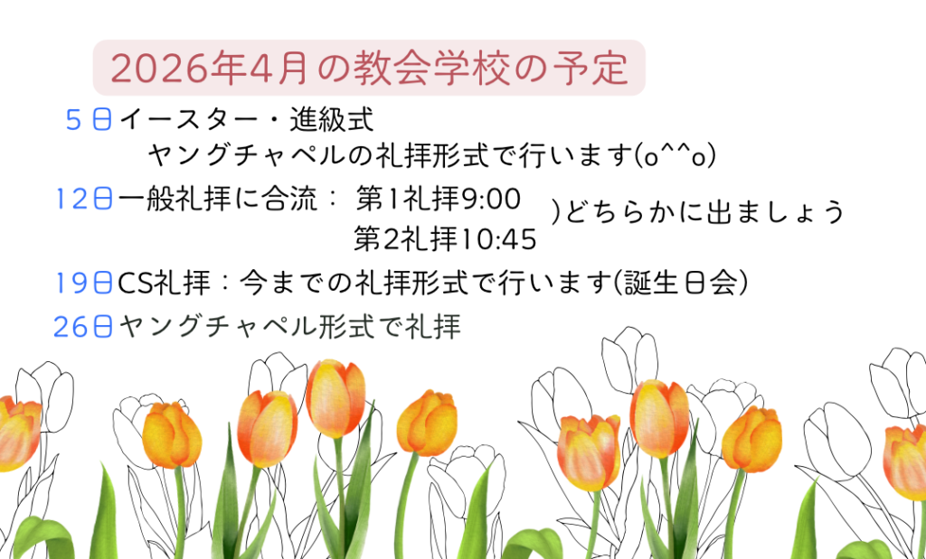 *19日/CS礼拝:今までの礼拝形式で行います(誕生日会も予定しています)